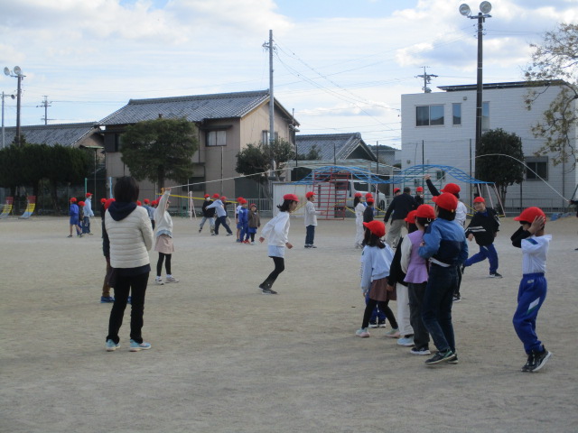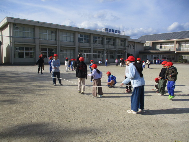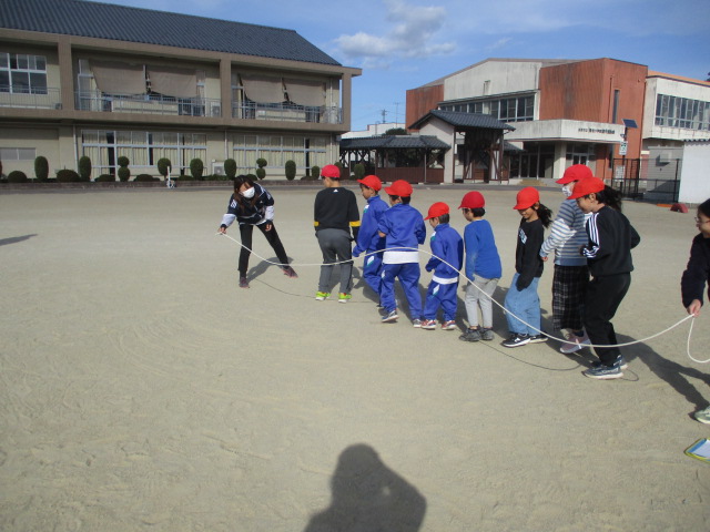 12月のほっこり集会は、「なわとびでみんななかよし」という体育委員会からの提案で集会をしました。