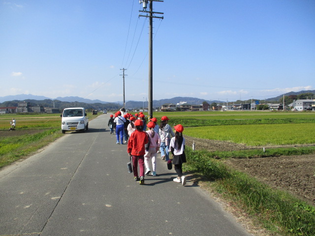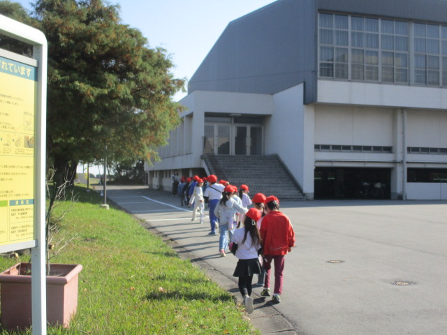 まち探検をしながら嬉野中学校まで歩きました。小学校に帰ってきた子どもたちは疲れた様子でしたが、まち探検で楽しく歩けたことに満足していました。