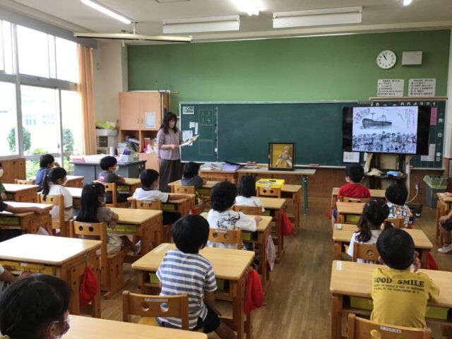 7月13日(火)に、1年生が豊地小学校の宝物「グレースちゃん」の学習をしました。入学式にも会場で紹介したグレースちゃんですが、教室で改めて学習する機会をもちました。