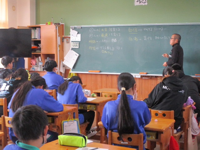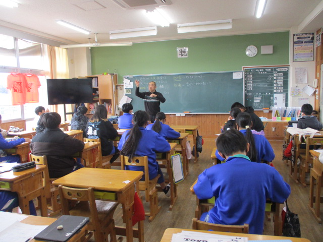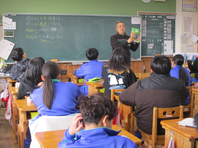 3か月後には中学生になっていることについて、実感がなかったり不安が多かったり楽しみで仕方がなかったり・・・子どもたちの思いはいろいろあるようです。そんな6年生が、中学校生活を少しでもスムーズに始められるように、毎年この時期に授業をしていただいています。中学校生活はどんなものか、どんなことを頑張ってほしいのか、自由と同時に責任も増えることなどを、ていねいにわかりやすく話していただきました。