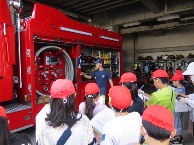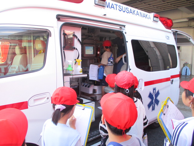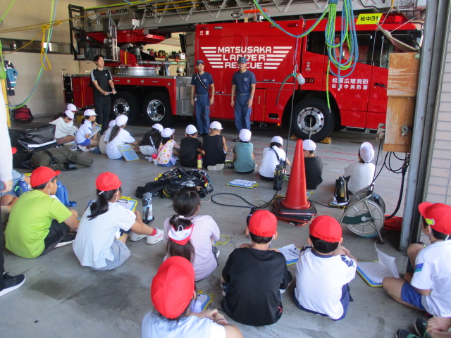 3年生が社会科の学習で、松阪中消防署へ社会見学に行きました。