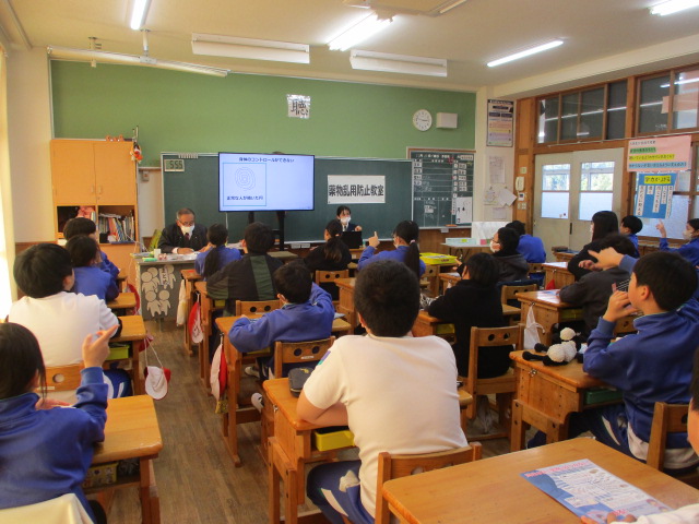 6年生が松阪警察署の方に来ていただいて、薬物乱用防止教室を行いました。