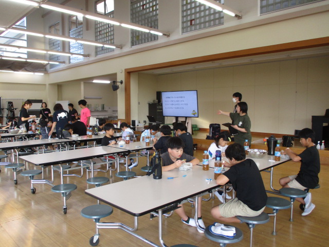 夏休み前日の午後、5年生が防災キャンプを行いました。