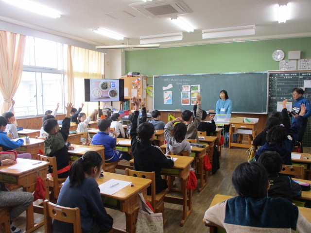 今年度2回目の食育授業を、栄養教諭の横田先生に来ていただいて各学年で行っています。