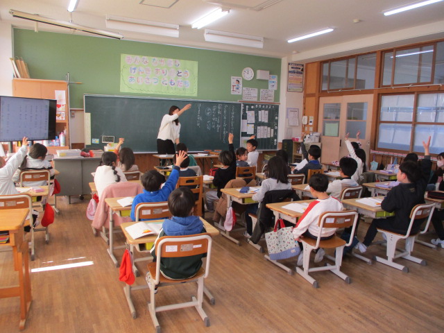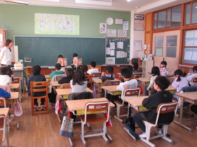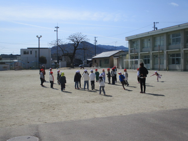 例年、2月頃に嬉野保育園・豊地幼稚園の年長組と1年生が交流会をしています。今年は、インフルエンザが流行ったため中止にしましたが、1年生が小学校を楽しんでもらおうと準備をしていたため、歩いて来てもらえる豊地幼稚園との交流会をしました。