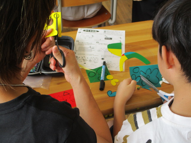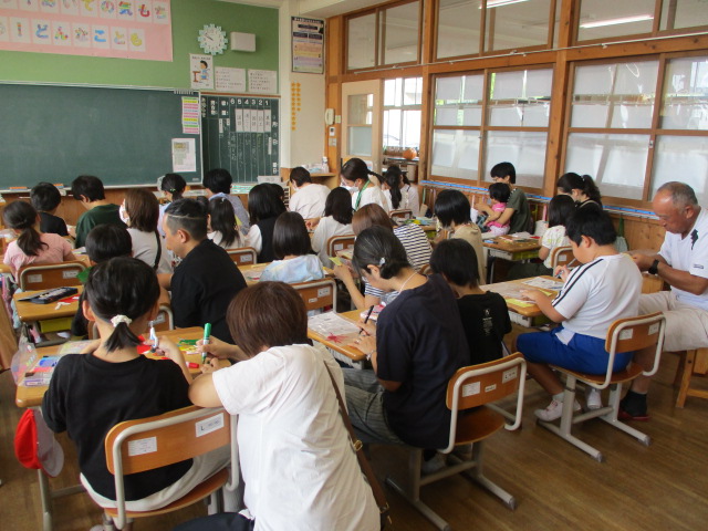 2年生が、お家の人と一緒に「うちわ」を作る親子活動をしました。