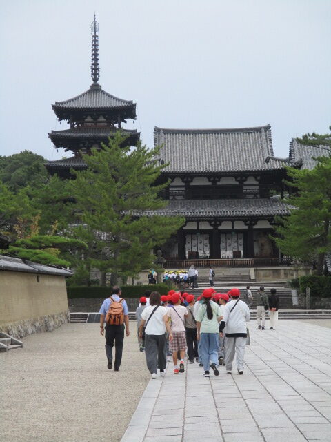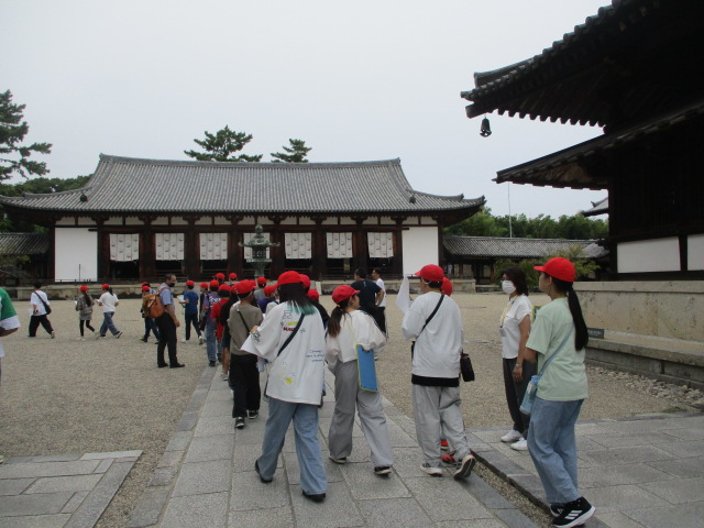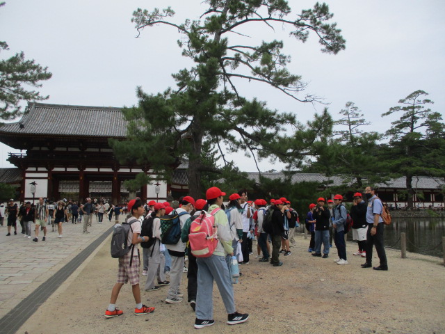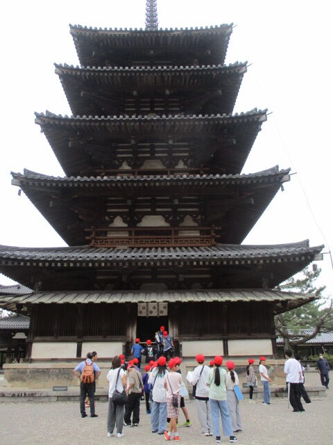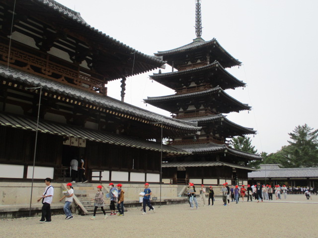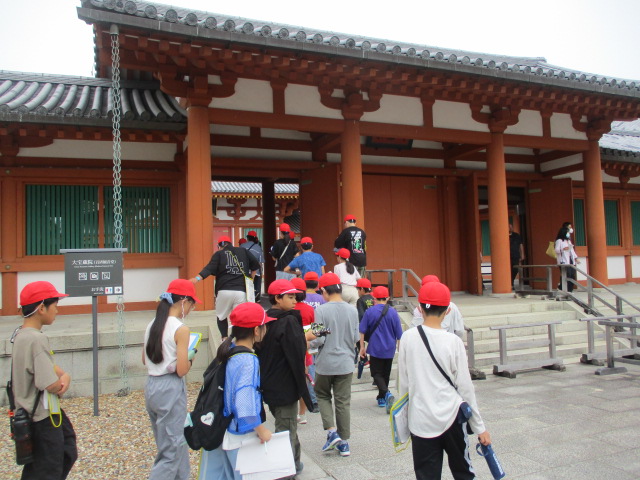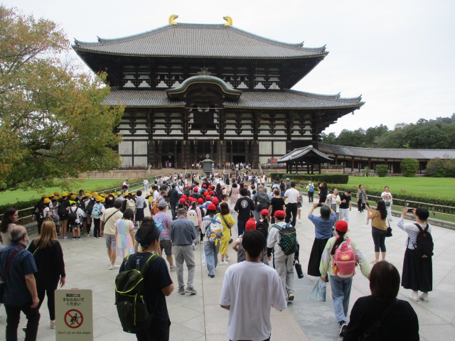 6年生が社会見学で、法隆寺と東大寺へ行きました。天気を心配しましたが、少しあたったかなというくらいの少量の雨ですみました。